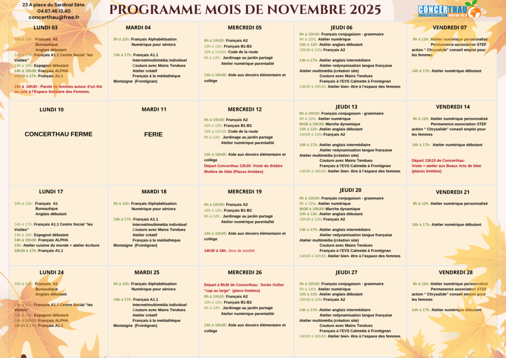 - 🎭 Sorties Culturelles – Novembre 2025 🌊Ce mois-ci, Concerthau vous embarque pour un voyage entre découvertes… Lire la suite : 🎭 Sorties Culturelles – Novembre 2025 🌊